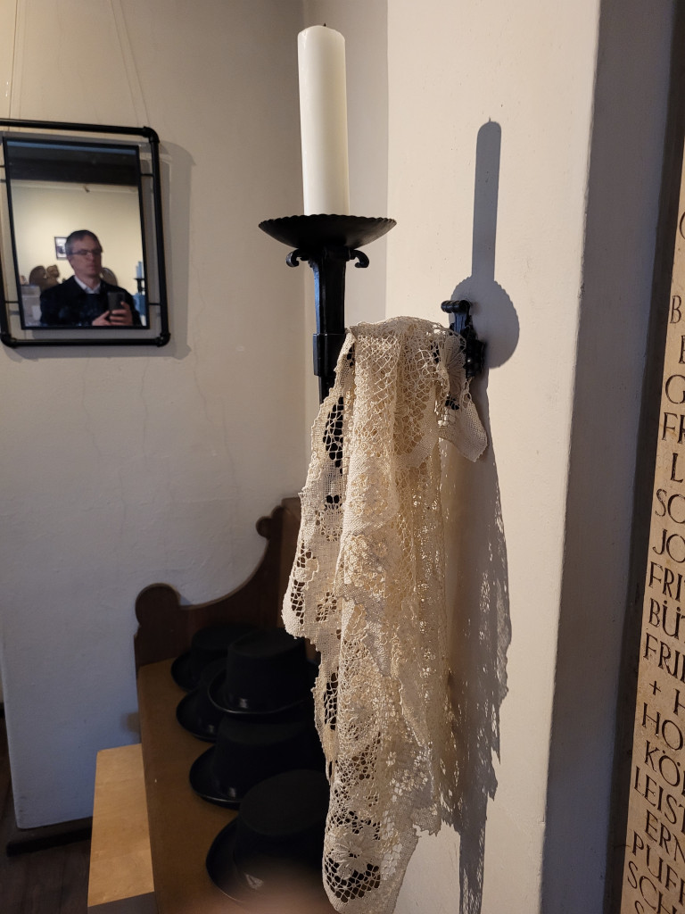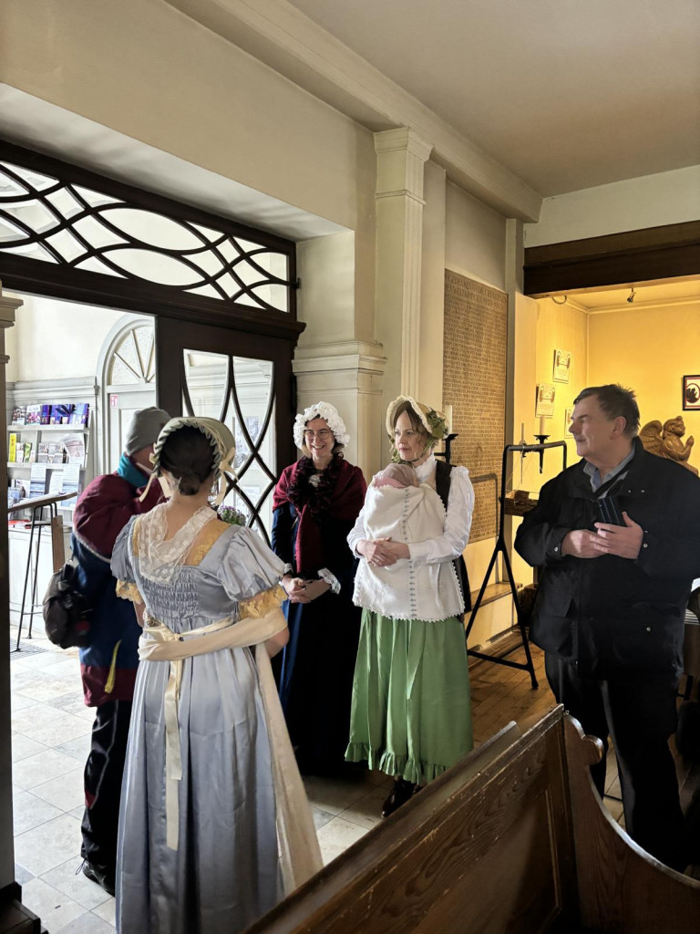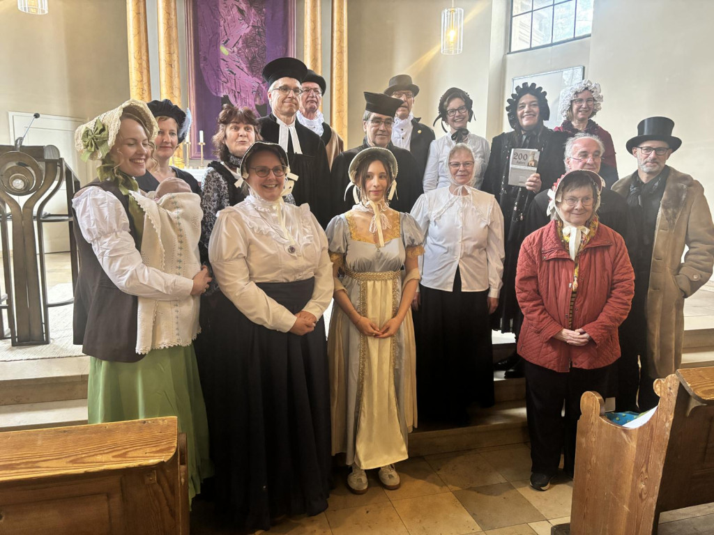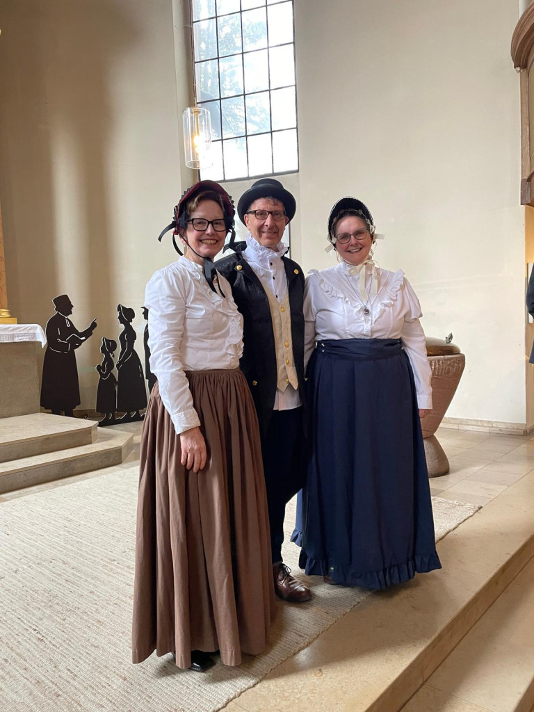 Ein Gottesdienst wie vor 200 Jahren? Wir haben es gewagt und schon gleich Männer und Frauen getrennt gesetzt. Historische Kostüme machten die Zeitreise noch lebendiger. Und mit Pfarrer Lehmus war die Gemeinde schnell in der Vergangenheit angelangt, ohne jedoch das heute und hier zu vergessen.